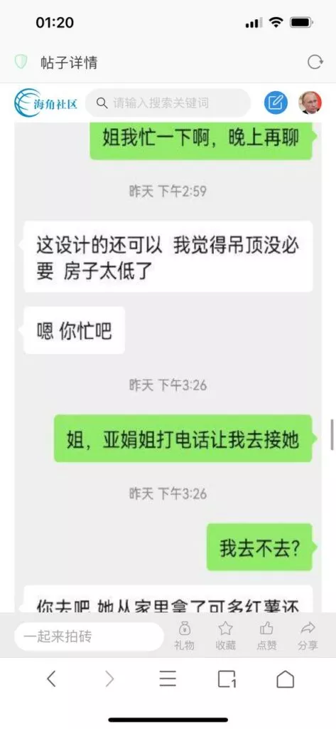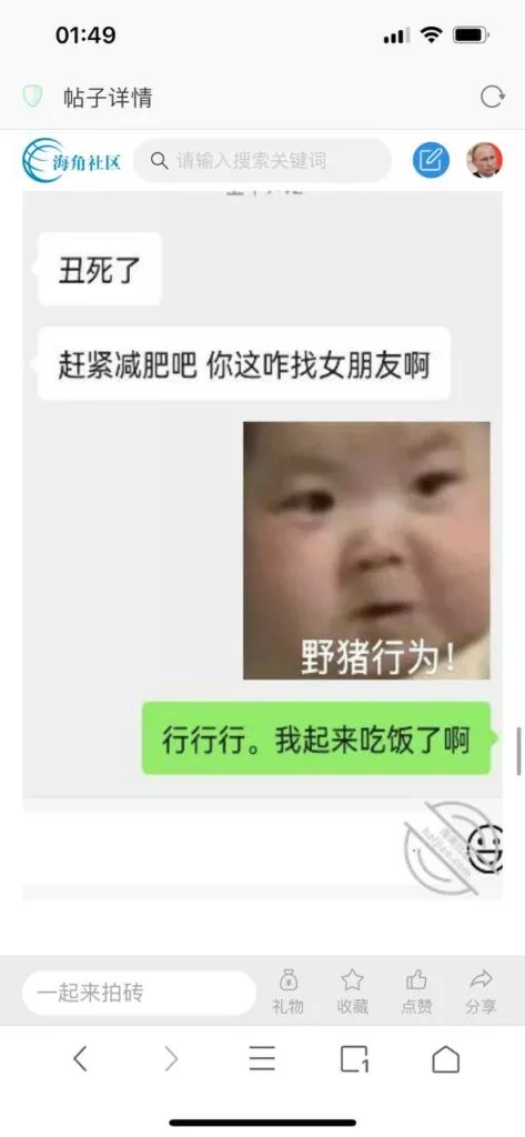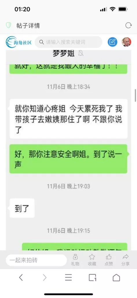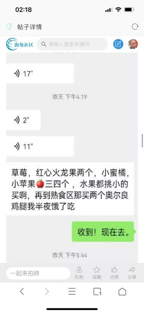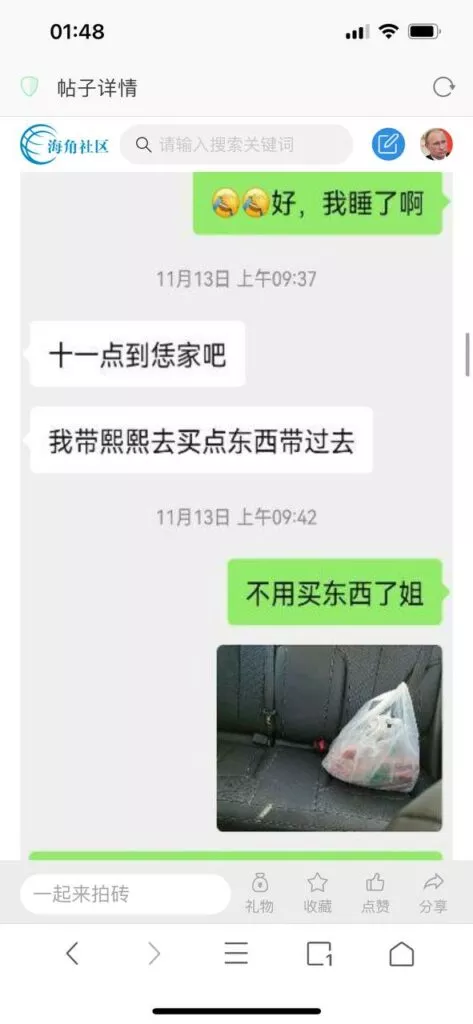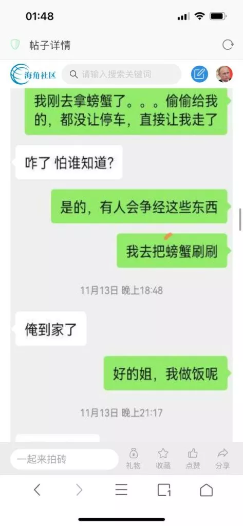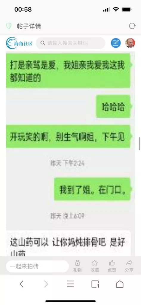 今天看电影也在犹豫要不要发一个视频。但也是我的锅,前几天晚上喝多了跟一个加我微信的海友打了微信电话,haijiaoshequ_456天南海北聊了快一个小时,脑子一热就答应了有机会再发一个帖。