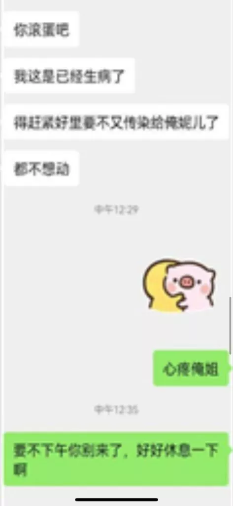 昨晚没有跟我姐聊,到家跟她说了一声躺着就睡着了,衣服都没有脱。早上七点多尿憋醒了,起来看见我姐凌晨五点给我发信息了。我估摸着那时候她也是醒来了,担心我给我发了个信息。然后我说我饿了,也懒得出去吃饭了不想动弹。