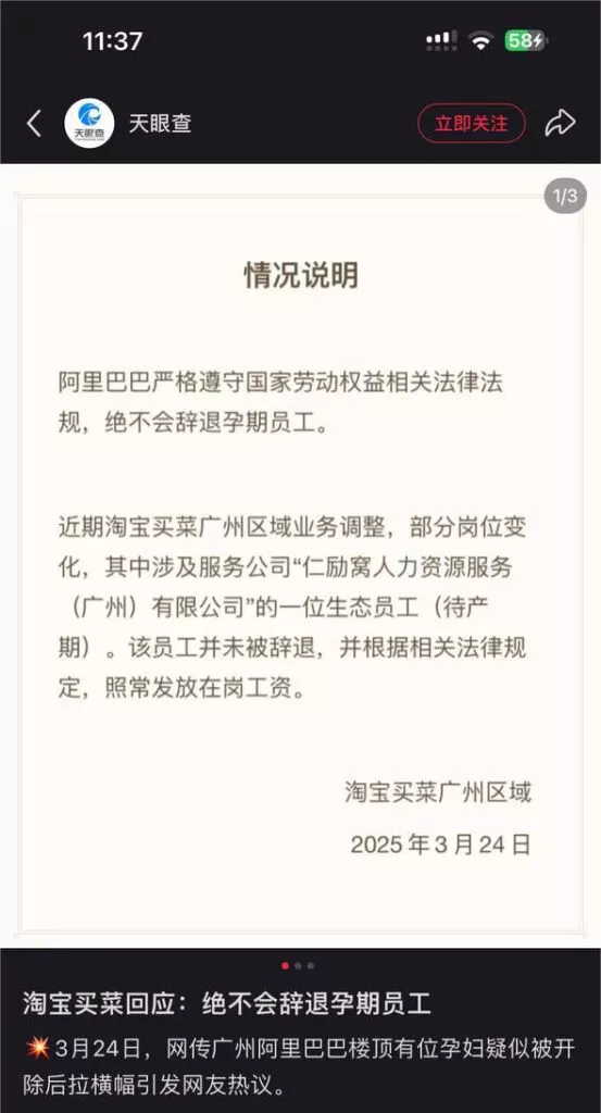 广州阿里巴巴曝丑闻临产孕妇被强制开出顶楼拉横幅维权